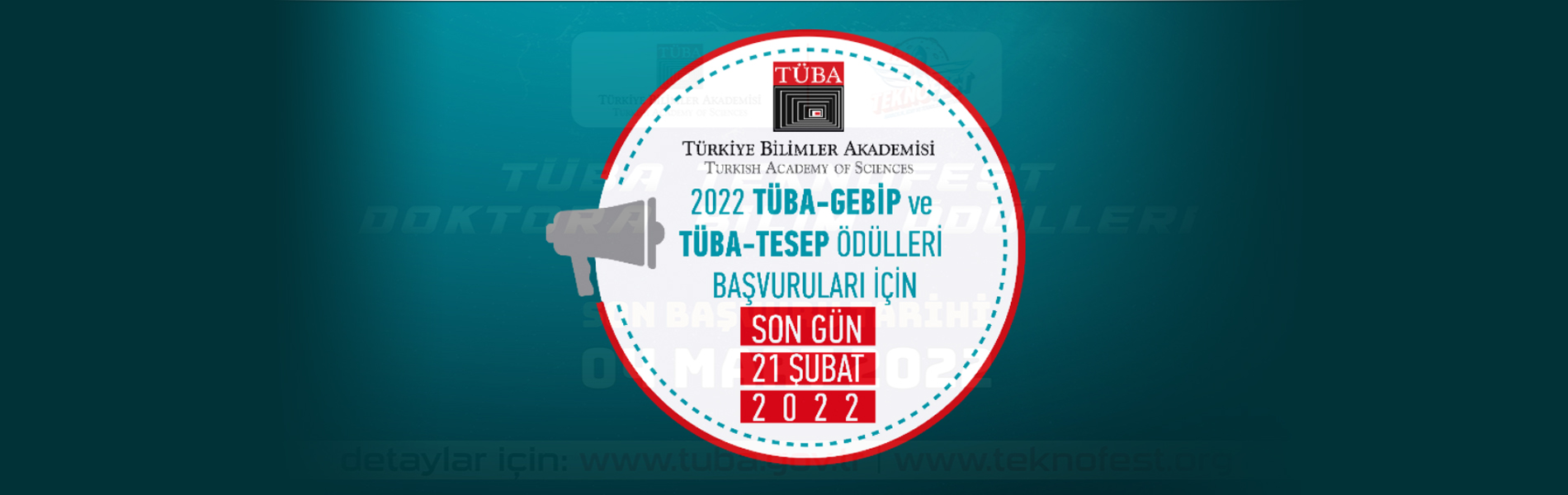 2022 yılı TÜBA-GEBİP* ve TÜBA-TESEP* ödül başvuruları başlamış olup, son başvuru tarihi 21 Şubat 2022 Pazartesi'dir.